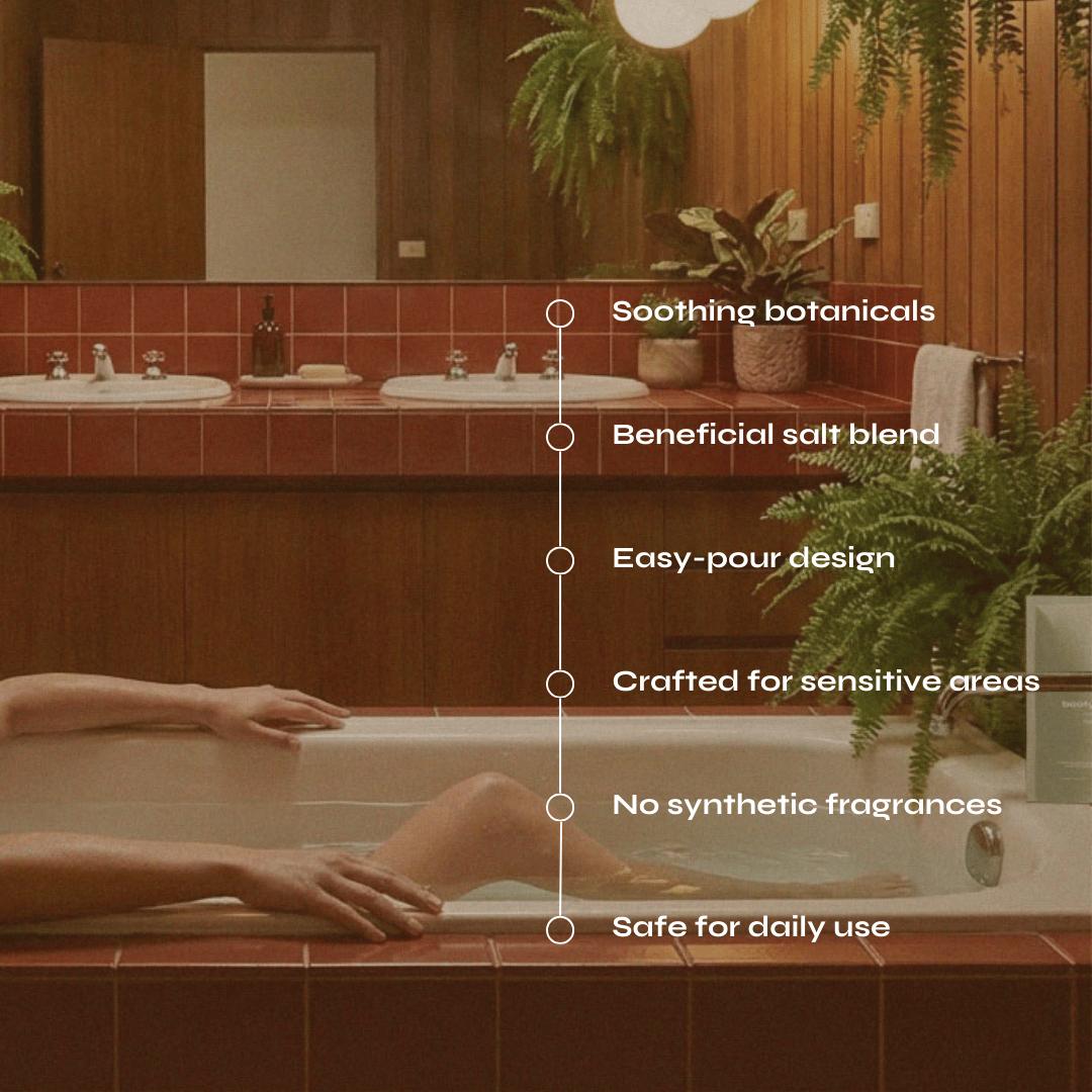 Rich in natural minerals to help soften water and enhance the soothing feel of your sitz bath. Adds gentle support for irritated, overworked skin.